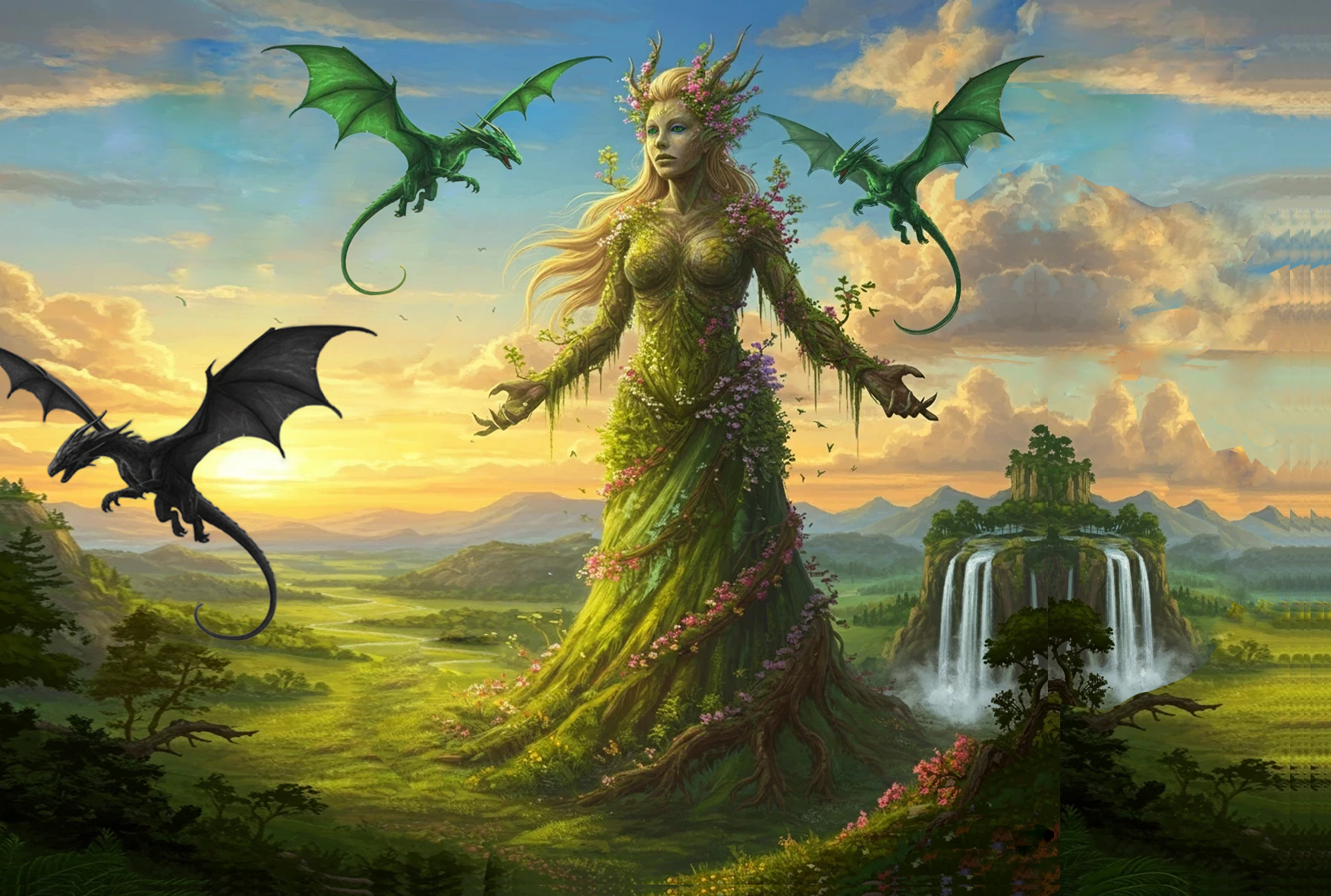 Mitt namn är Altea. Se mig som en naturkraft som förmedlar magiska frekvenser genom blommorna. Jag visar mig nu för dig som en vacker, skön, ung kvinna med rödblont hår och en gyllene klänning med lotusblommor på, men i grund och botten så är jag en naturkraft kopplad till Eridanus, Alvriket som flera av er har DNA ifrån.
